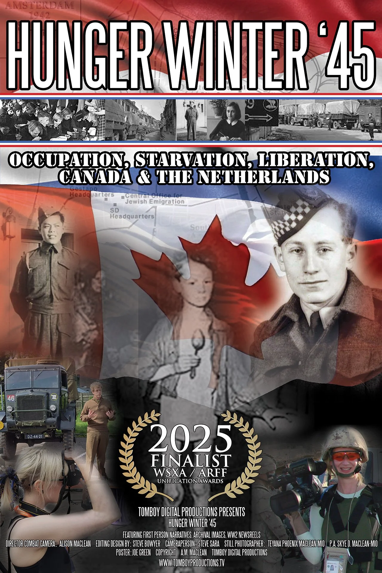 Hunger Winter ‘45, Film Festival Short Doc. 36 mins. Dutch child witness stories, archival footage, Veteran & Troop comments.